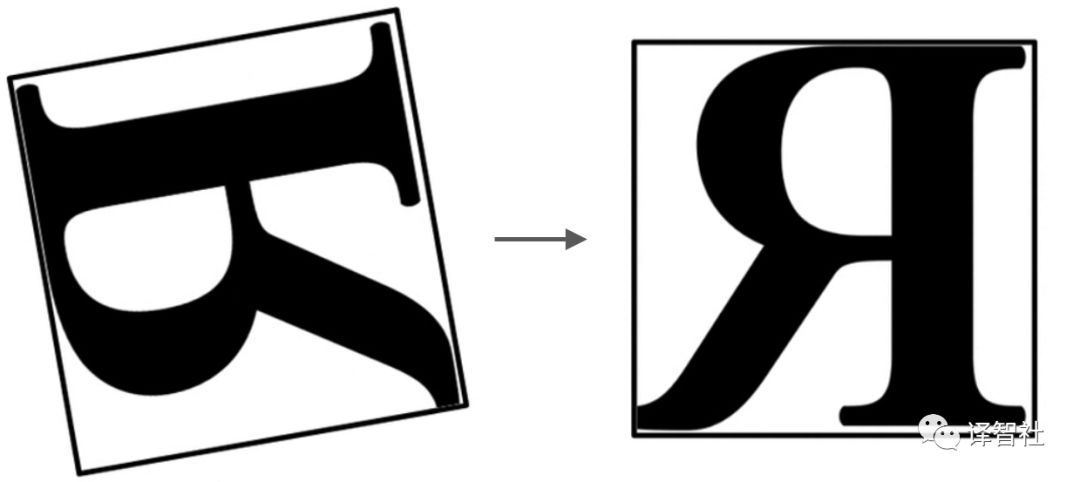 当我们看到上面的这个字母时,我们是会在脑里边默默地把他旋转到一个它们一般所放置的参考点,类似于: