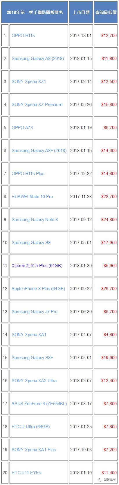苹果遭遇严重冷落,只有一款iPhone 8 Plus 64GB上榜,而且只排第12。