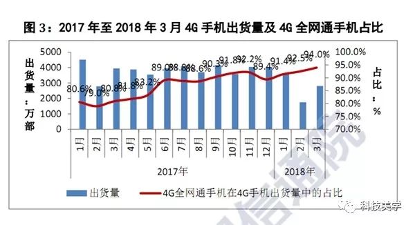 3月份4G手机出货量2808.5部,同比下降28.7%,其中4G全网通手机占比94.0%。4G上市新机型67款,同比下降40.2%。