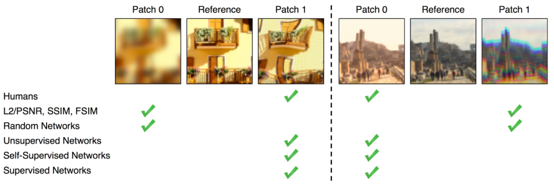 虽然当下有一些相对直接的方法来计算图像相似度,比如测量像素上的差异(如FSIM, SSIM),但这种方法获得的相似性差异和人眼感知到的差异相去深远。