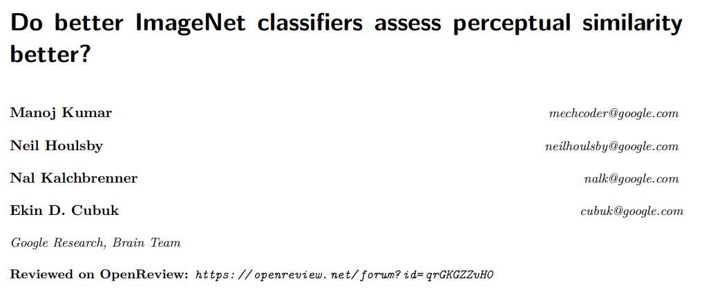 最近Google发表了一篇论文,专门研究了ImageNet分类器是否能够更好地评估感知相似度。