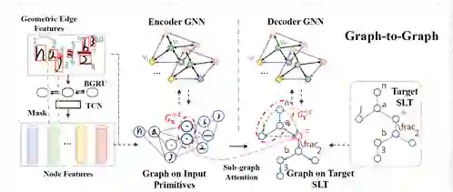 为了解决端到端识别公式的同时显式解析符号的位置和层次关系的难题,我们提出了图到图学习方法来探索手写数学公式的层次结构建模和解析。具体的,我们将输入联机公式表示成笔画关系图,直接从数据中自动学习目标符号标签图的生成。我们设计了一种改进的图注意网络(Graph Attention Network, GAT)来自适应的建模源图笔画间的空间以及时间关系,再使用对不同层次关系独立传递信息的图卷积网络(Graph Convolutional Network, GCN)来学习目标符号标签图表示以及目标图与输入笔画关系图的对应关系。此外,我们还提出了一种新颖的子图注意机制,以对齐输出符号结点与对应输入笔画部件构成的子图。我们所提出的方法显著地提升了原有方法在多个公开数据集的精度,并且显式分割出了联机数学公式中的数学符号。