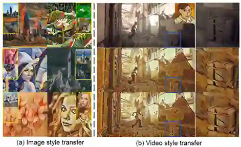 给定内容图像和引导的风格图像,风格化方法可以将以风格图像的色调和生动的笔画模式呈现到内容图像中,同时维护内容结构信息。虽然目前的图像风格化算法可以生成良好的视觉效果,但视频风格化仍是一项具有挑战性的任务,它不仅需要每帧产生良好的风格化效果,而且还要考虑视频相邻帧之间的连续性。