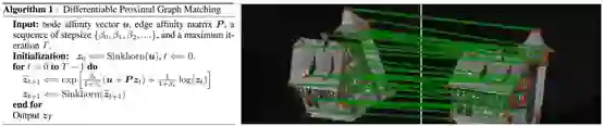 在这项工作中,我们介绍了一种基于近端算子的算法,称为可微分近端图匹配(DPGM)。具体地说,我们将图匹配的二次分配问题松弛并分解为一系列凸优化问题。整个算法可以看作是一个从图关联矩阵到节点对应关系预测的可微分映射。因此,该方法能够集成到一个端到端的深度学习框架中,以便学习到一个更好的、专门用于匹配任务的深层特征表示。此外,我们提供了一个理论保证,保证了所提出的方法在合理的迭代次数内收敛到一个稳定解。我们的算法在和深度模型端到端结合后,拥有很好的泛化能力,可以在合成图上训练后直接应用到实际数据上。数值实验表明,我们的框架在不同数据集的测试中均能达到很好的效果。