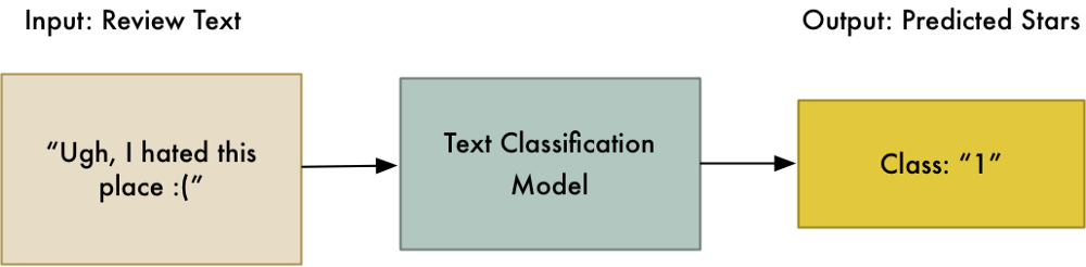 我们先设置一个简单的线性分类器,用于接收单词。分类器的输入是评论的文本;输出是5个固定标签之一:“1星”,“2星”,“3星”,“4星”,以及“5星”。