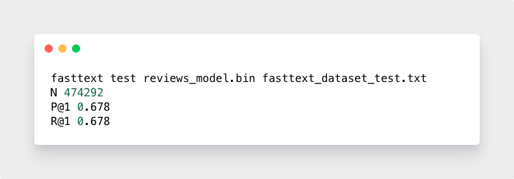 还可以通过运行 fastText 的predict命令然后键入自己的评论,以交互方式试用模型(注意,输入的格式跟外面训练数据要保持一致,全部小写并且标点前面加空格)。