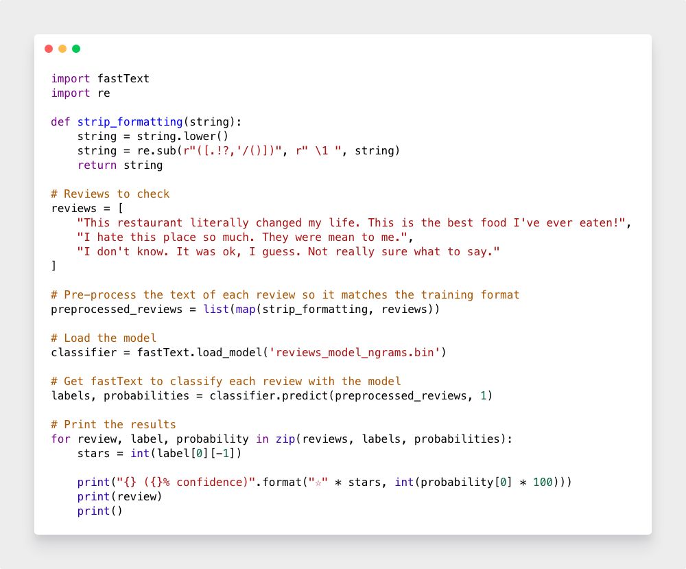 fastText 最爽的是可以很轻松的从任何 Python 程序调用训练模型。