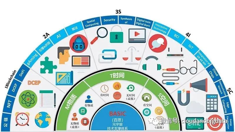 关键词:元宇宙的基石(三要素),百思(BASIC)技术架构,二维聚能模型,元宇宙的“1238”,中国特色的元宇宙