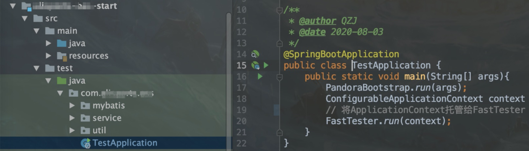 /*** @author QZJ* @date 2020-08-03*/public class TestApplication {public static void main(String[] args){PandoraBootstrap.run(args);ConfigurableApplicationContext context = SpringApplication.run(TestApplication.class, args);// 将ApplicationContext传给FastTesterFastTester.run(context);}}