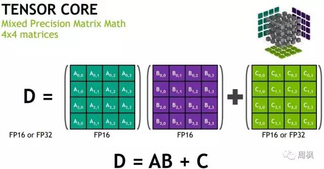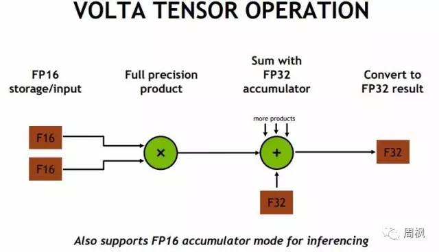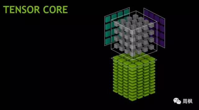 这是NVIDIA在Volta张量操作上展示的另一个视图,展示了如何使用较低的精度FP16输入并到达FP32输出。