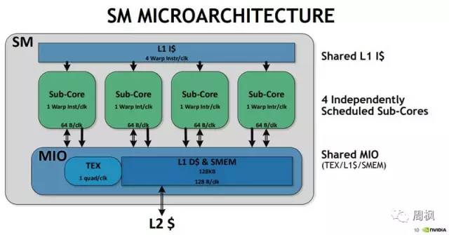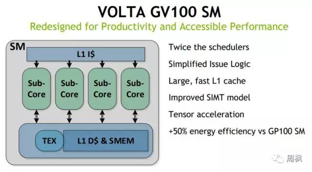 这里的关键是两个4x4x4张量核。这就是让Volta成为革命性飞跃的秘诀。