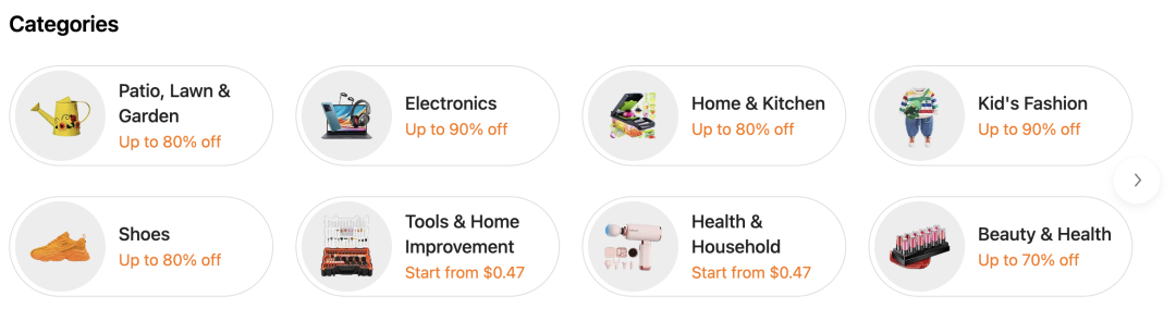 从品类结构看,现在Temu的主要以销售女装、厨房工具、家居用品等品类为主,其中女装销售占比达到了45%,35%则是厨房用品、浴室用品等轻便小百货,相对比下,SHEIN二季度女装的销售占比则超过60%。
