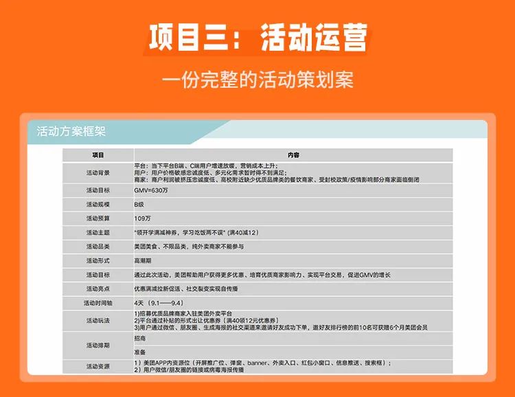 让你能够切实掌握项目的操盘思路、方法等,提升你的项目能力,积累自己的方法论,并且输出一份有竞争力的项目作品集。