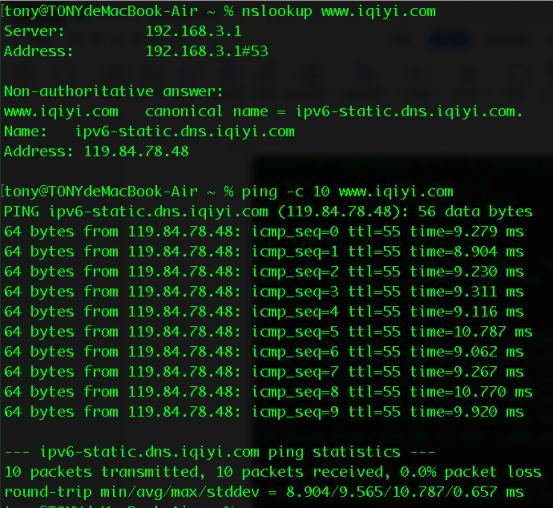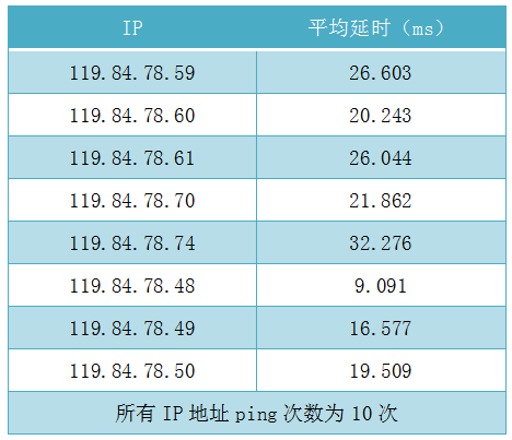 解析爱奇艺的网站,并分别ping每一个IP地址,统计其延时。从上图可以看出,从本地访问速度最快的为9.091ms,最慢的为32.276m,而二者延时相差3倍以上。