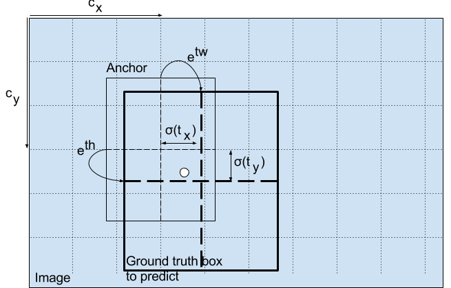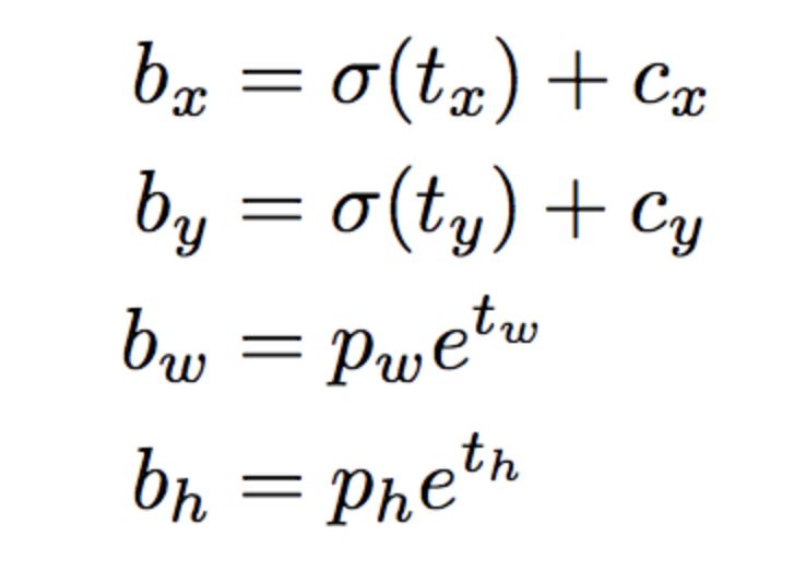 下面的公式描述了网络输出是如何转换,以获得边界框预测结果的。