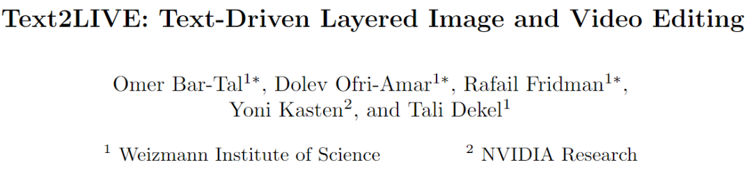 魏茨曼科学研究学院和英伟达的研究人员就提出了一个模型Text2Live,用户只需要输入自然语言文本作为命令,就能对给定的图片和视频进行处理。模型的目标是编辑现有物体的外观(如物体的纹理)或以语义的方式增加场景的视觉效果(如烟、火等)。