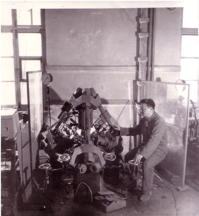这项工作需要高温、高压的实验手段。初期我们只在圆柱状高压容器上打交道,没有任何基础,一切材料和装备都要另起炉灶,困难非常大。那时国家是计划经济体制,所有物资来源都要事先订计划,我们的工作没有列入国家计划,压机、合金钢材、硬质合金碳化钨等都没有来源,根本无法工作。于是组内同志都行动起来,到处求人帮助,例如我们拿着张劲夫给的函,辽宁和山西省委书记的介绍,请太重、沈重解决压机都未成功。当时一台300 吨千斤顶就是用所里一台变压器从沈阳一个小工厂换来的。甚至硬质合金碳化钨的烧结和加工都是自己动手。所内器材科认为高压的事情太多,是例外的工作,根本不管。所里工厂没有大件淬火、回火的炉子,对高压的研究也难以配合,所以,名义上我们是做高压研究的,实际上天天往外跑求人帮助,是跑器材的。