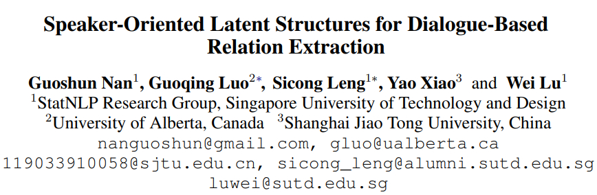 该模型旨在通过探索面向说话者的潜在结构来获得更好的 DiaRE。论文提出的模型有四个模块:
