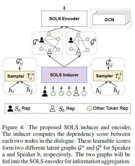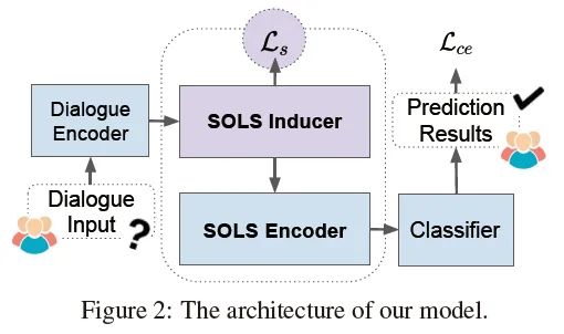 2. 上下文化的表示将被输入到 SOLS 诱导器(SOLS Inducer)中,以自动生成两个面向说话者的潜在结构和一个新的正则化项,旨在缓解纠缠的逻辑和数据稀疏问题。