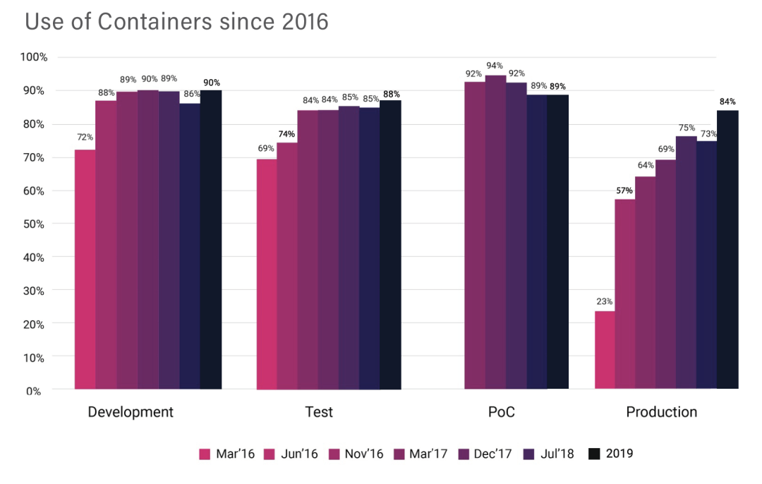 来源:CNCF SURVEY 2019: DEPLOYMENTS ARE GETTING LARGER AS CLOUD NATIVE ADOPTION BECOMES MAINSTREAM