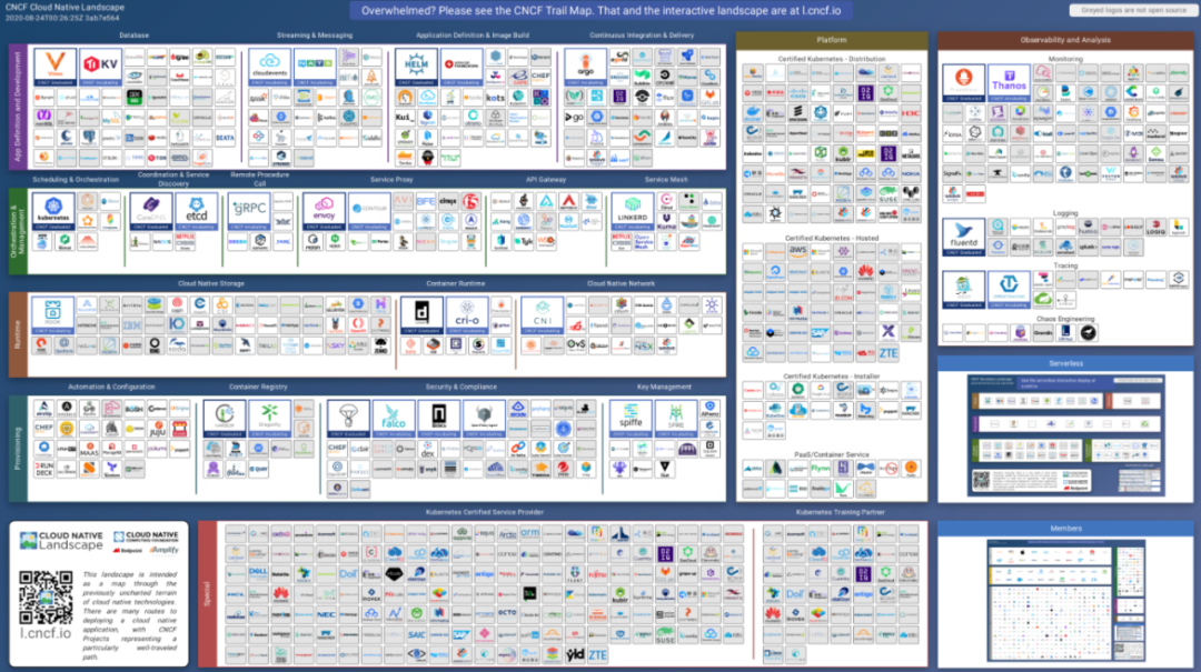 截止2020年7月,CNCF的云原生全景图上共分为9大类(应用定义与开发、编排与管理、运行时、配置、平台、可观察性与分析、Serverless、会员和其它),29个功能模块,1427个项目,项目市值总额达到18.9万亿美元,云原生生态体系已经初步形成,随着云化的趋势到来,未来会开始逐步蚕食非云市场,有望成为IT领域未来十年期的潜力赛道。