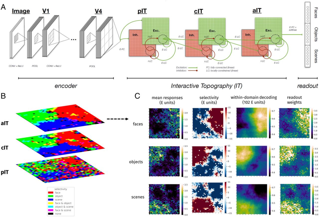 开发了一种计算模型——交互式地形网络(ITN),使他们能够模拟 IT 的空间组织或地形(topography),并更多地了解相邻的脑组织簇是如何组织和相互作用的。