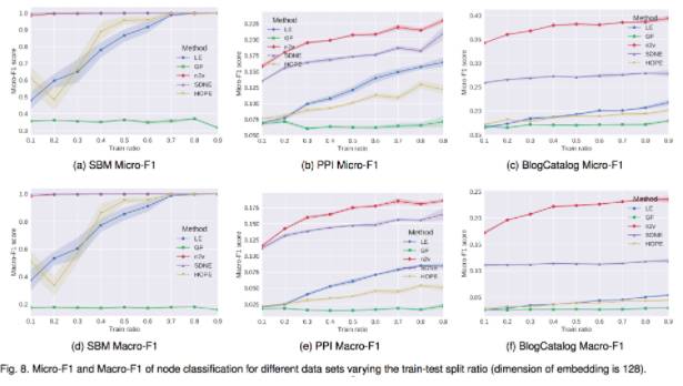 作者在 SBM、PPI 和 BlogCatelog 网络上做了节点分类的实验。如下图: