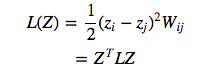Laplacian Eigenmaps 的目标是将相似性高的两个节点,映射到低维空间后依然保持距离相近,其损失函数定义为: