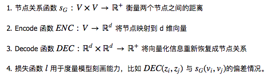 在这些方法中,受研究和应用关注最多的就是节点向量化(Node Embedding),即对于一个图 ,学习一种映射: