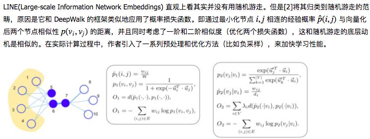 DeepWalk 是最早提出的基于 Word2vec 的节点向量化模型。其主要思路,就是利用构造节点在网络上的随机游走路径,来模仿文本生成的过程,提供一个节点序列,再套用 Word2Vec 对每个节点进行向量化表示。因为知道了节点 V 的前 k 个节点和后 k 个节点,就能很好地将网络邻居结构存入向量中。其目标就是最大化