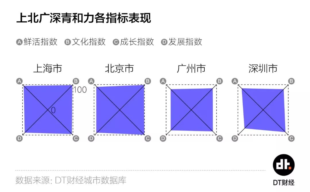 除了青和力得分高低,城市在各项指标上的得分偏向,可能是更加具体有效的参考。