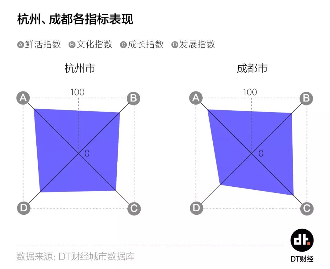 成都的文化指数得分超过杭州,主要表现在文化场所更多,文化消费力也格外强,这里有非常好的文化氛围;但是,杭州也有更多的文娱活动,年轻人在这里同样可以吃上丰富多彩的精神食粮。