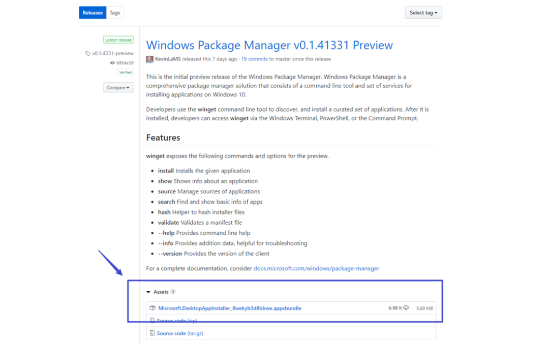 在 WinGet 的 GitHub Release 页面手动下载安装