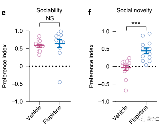 在这些“缺陷”小鼠出生后的第56天,通过检测显示,接受Flupirtine者的社会新事物的偏好指数和正常小鼠差不多。