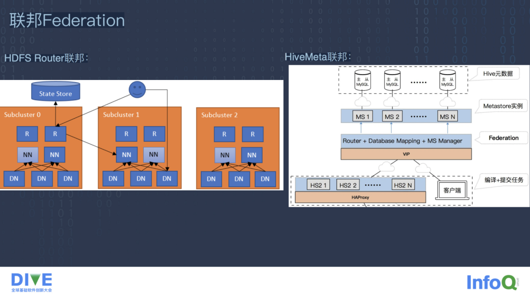 我们通过 Federation 解决了数据和库表元数据的孤岛问题,让上层应用基本可以无感知底层的变化而实现跨集群的数据互通,但 Federation 也有一些问题。