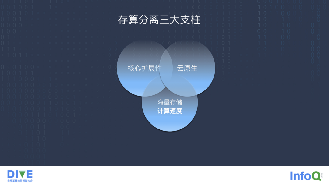通过前面存算一体提出的问题以及存算分离的简单的介绍,我们从三个核心点设计和考虑我们的存算分离架构,主要是核心扩展性、海量存储计算速度和云原生。