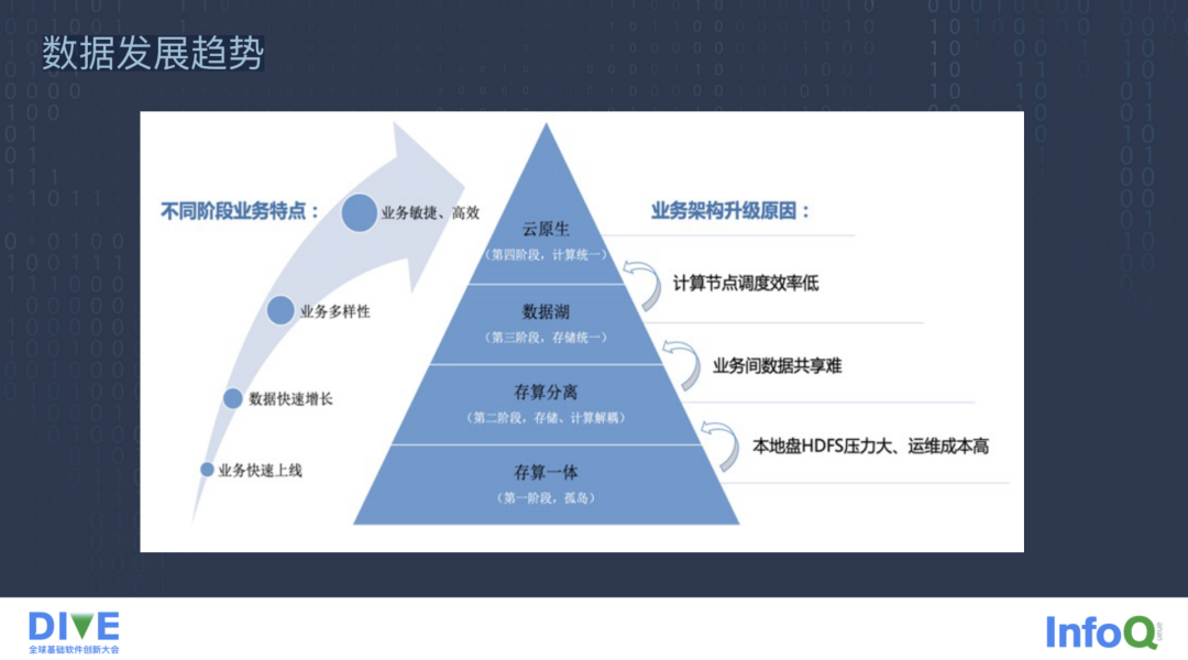最后一个阶段就是云原生。云原生的目的是运用多个弹性的计算资源。,计算资源可以快速被申请和创建,但不必关心整体的调度细节以及调度过程中的容错、迁移、重建等一系列操作,这就是基于云原生的存算分离模式。像云数仓这种服务越来越火,存算分离也借助与云原生和缓存加速真正实现大规模生产实践的落地。