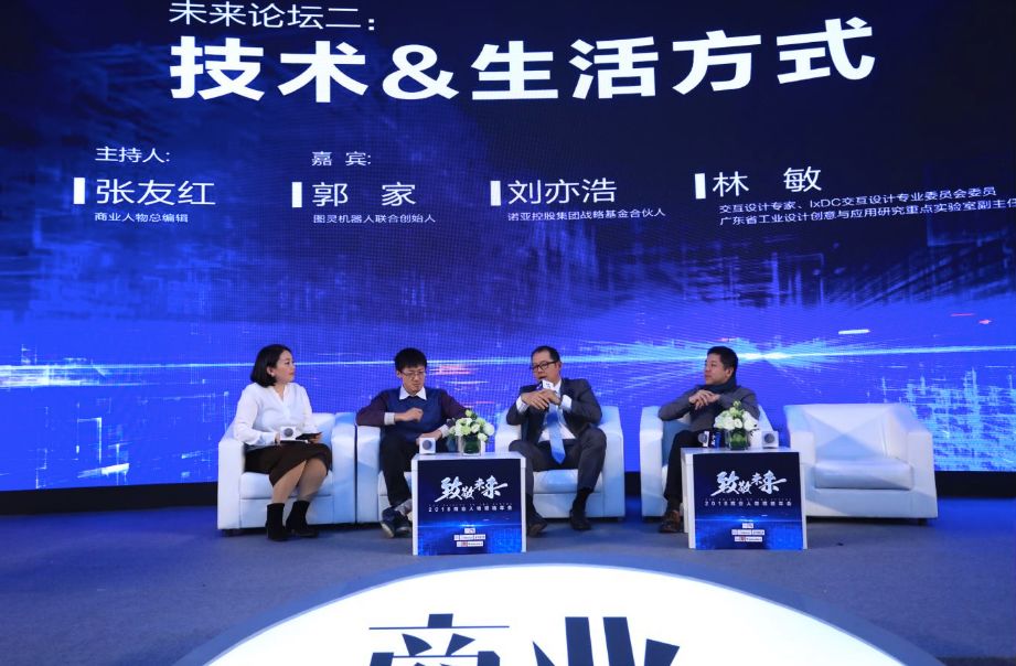 “致敬未来”2018商业人物领袖年会上,商业人物联合创始人兼总编辑张友红与图灵机器联合创始人,诺亚控股集团战略合伙人刘亦浩,交互设计专家、广东省工业设计创意与应用研究重点实验室副主任林敏围绕“技术&生活方式”这一话题进行了对谈。