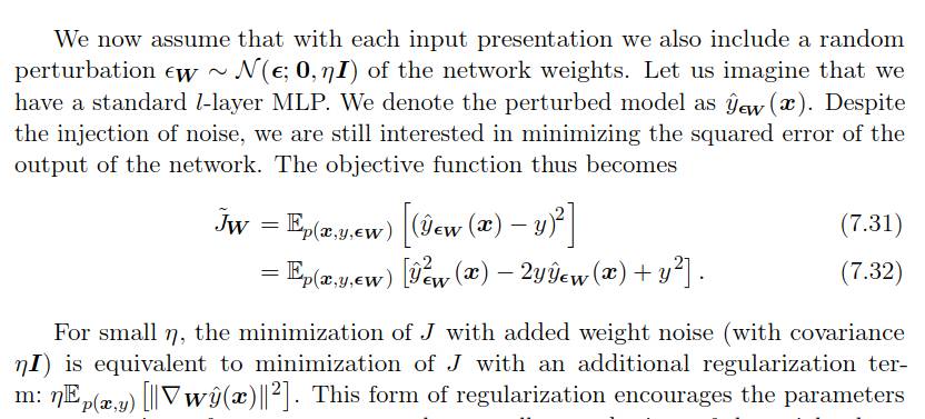 这里比较新奇的地方在于向输入和神经网络单个层的输出中添加了小噪声。这样神经网络的运行和 L2 正则化类似,其数学解释请参见 https://www.deeplearningbook.org。