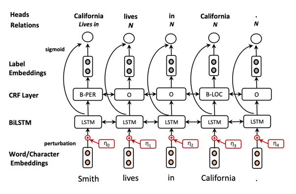 我们的基准模型支持从相同的输入同时提取多组关系。然后,我们使用对抗式训练进一步扩展了这个强大的基线。