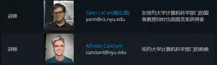 该课程自2020年春季开始由Yann LeCun与他的徒弟Alfredo Canziani共同执教。