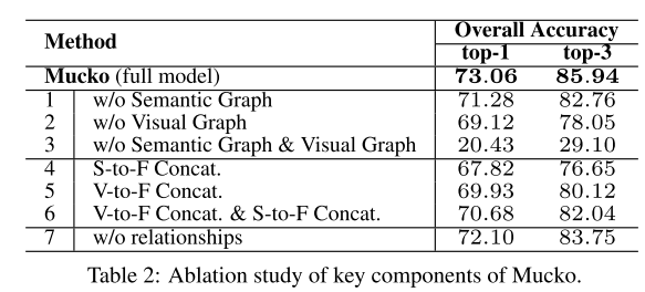 本文作者基于FVQA做了消融实验,分别去掉不同模态的图以及对应的注意力加权卷积机制,还去掉了多模态图中边的信息来进行对比,最后证明以上的工作都是有意义且必要的。