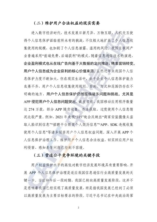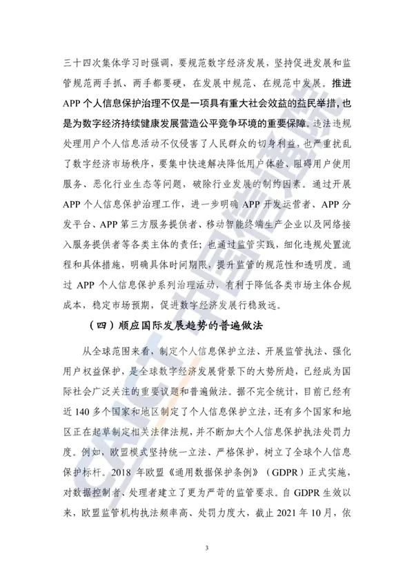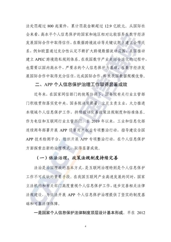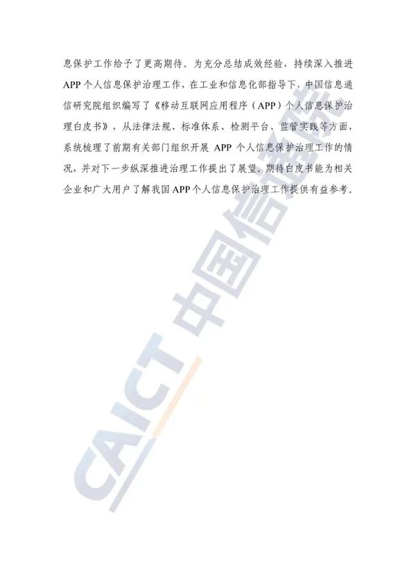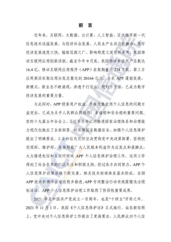 当前,以移动互联网为代表的新一代信息通信技术快速发展,不断催生新业态、产生新模式,推动各类应用程序(APP)蓬勃发展,我国APP在架数量和用户规模持续扩大,已经成为个人信息保护的关键领域。移动互联网发展焕发新活力的同时,也带来了一系列侵害用户个人信息权益问题。最近几年,工业和信息化部连续部署开展APP侵害用户权益专项整治行动,大力推进电信和互联网领域APP个人信息保护治理工作,在个人信息保护方面探索出新的治理模式,取得显著进展。为充分总结成效经验,在工业和信息化部指导下,中国信息通信研究院组织编写了《移动互联网应用程序(APP)个人信息保护治理白皮书》(以下简称“白皮书”)。