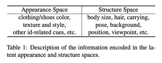 在本文中,我们首先定义了两种特征。一种为外表特征,一种为结构特征。外表特征与行人的ID相关,结构特征与low-level的视觉特征相关。
