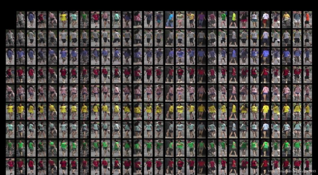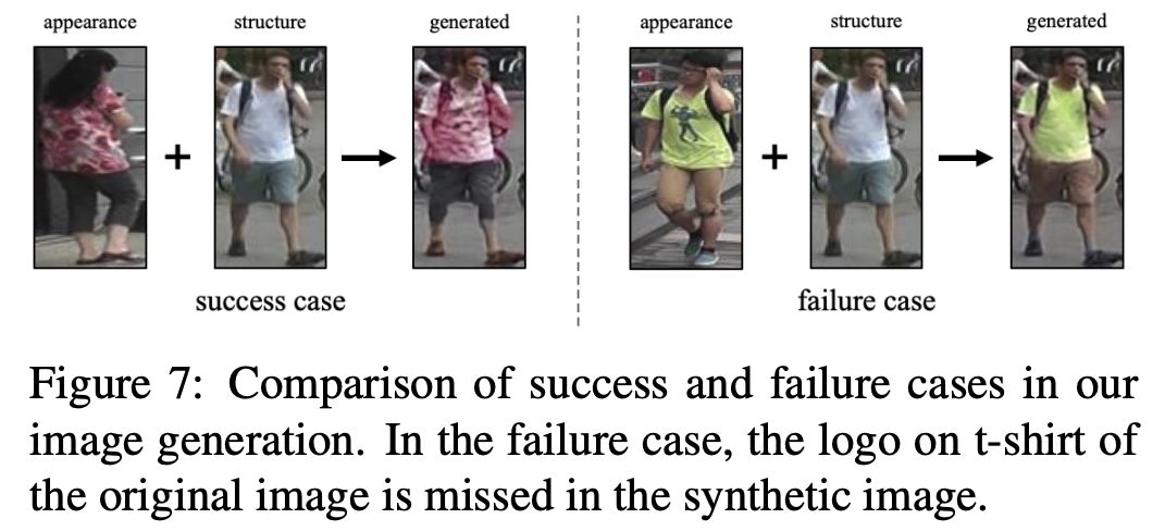 不需要part matching来提升行人重识别的结果。只是让模型看更多训练样本。给定N张图像,可以生成NxN的训练图像来训练。(下图第一行和第一列为真实图像输入,其余都为生成图像)