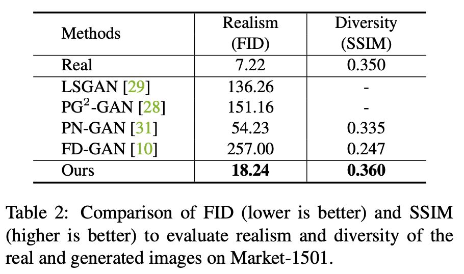 之前工作生成的行人图像质量相对低。(主要体现在两点:1.行人不够真实[1,2],图像模糊[4],背景不真实[3]; 2.需要额外的人体骨架或者属性标注[3,4] )