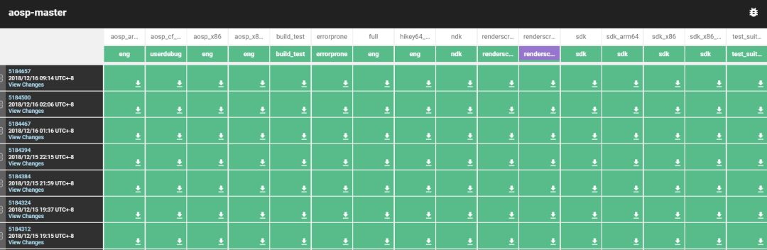 该持续集成仪表板当前包含 AOSP_ARM64、build_test、NDK 和 SDK 等部分。地址: