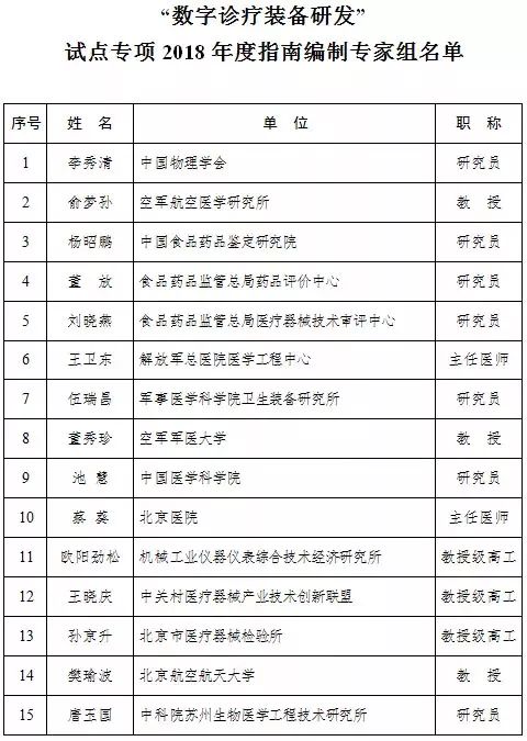 “数字诊疗装备研发”试点专项2018年度项目申报指南