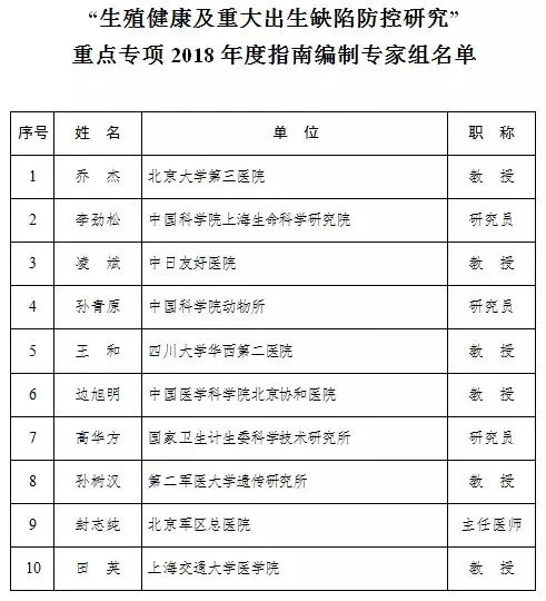 “生殖健康及重大出生缺陷防控研究”重点专项2018年度申报指南