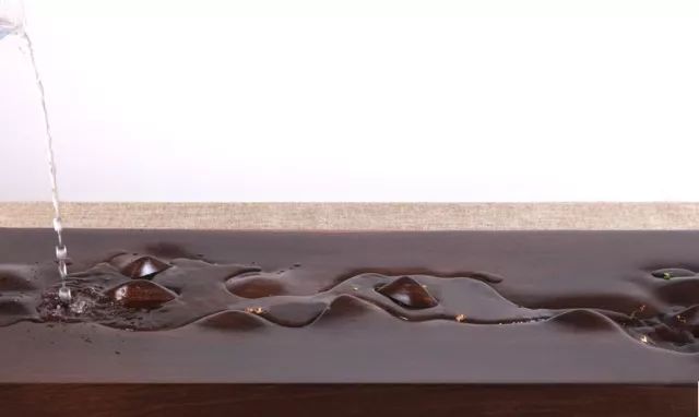 “设计如何让生活变得更美,一直是我探索的社会课题。该茶盘以自然江山为灵感,通过写意的方式,把山河微缩在方寸之地的茶盘上,从左至右,流经高山、盆地、丘陵、平原,一路走来蜿蜒曲折,有上游、中游、下游的形态塑造与地形落差。品茶间,洒落的茶水流入山谷,此时万里河山尽收眼底。”